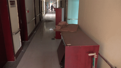 工作組在位于石家莊市新華區(qū)的河北仁愛醫(yī)養(yǎng)服務(wù)集團(tuán)二樓,同樣發(fā)現(xiàn)一處被封堵的安全出口。且旁邊的告知函上已寫明,該處自2023年4月20日起進(jìn)行裝修改造,工期為100天左右。