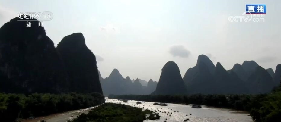 桂林山水甲天下,漓江沿線正是桂林山水最典型的代表。現(xiàn)在已經(jīng)是廣西的汛期,降雨開(kāi)始增多。大家通過(guò)畫(huà)面可以看到,漓江的水不像前幾天那樣清澈,這是因?yàn)榍疤?,桂林剛剛?jīng)過(guò)一場(chǎng)強(qiáng)降雨,上游來(lái)水增加。在漓江之上,無(wú)論陰晴雨霧,都是不同的風(fēng)景。像今天這樣的晴天麗日,在漓江上穿行就像在欣賞一幅青綠山水;而在陰雨天,又像是穿行在傳統(tǒng)的水墨畫(huà)之中。根據(jù)桂林海事部門預(yù)測(cè),“五一”假期,桂林水上發(fā)送旅客量超過(guò)30萬(wàn)人次,這幾天旅游公司的船票基本上都是提前售完的狀態(tài)。