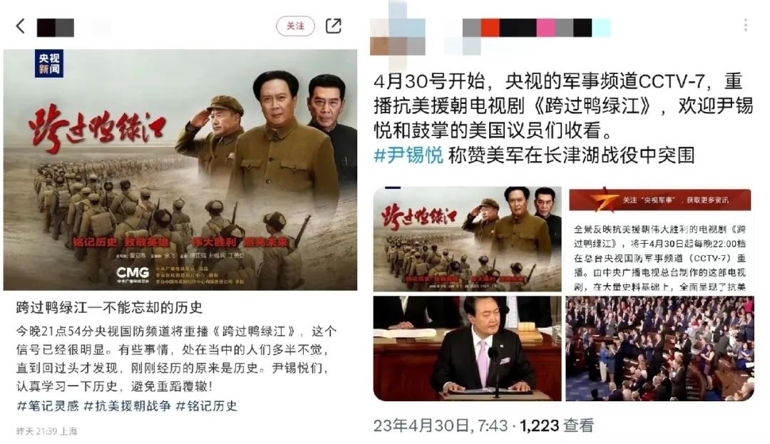 新加坡《聯(lián)合早報》更在4月30日晚10點準時發(fā)布文章《電視劇<跨過鴨綠江>將在中國央視重播》,開篇明確重點:在韓國總統(tǒng)稱贊美國海軍陸戰(zhàn)隊第一師在長津湖戰(zhàn)役中的表現(xiàn)后,中國央視稱將從星期天(4月30日)起重播電視劇《跨過鴨綠江》。