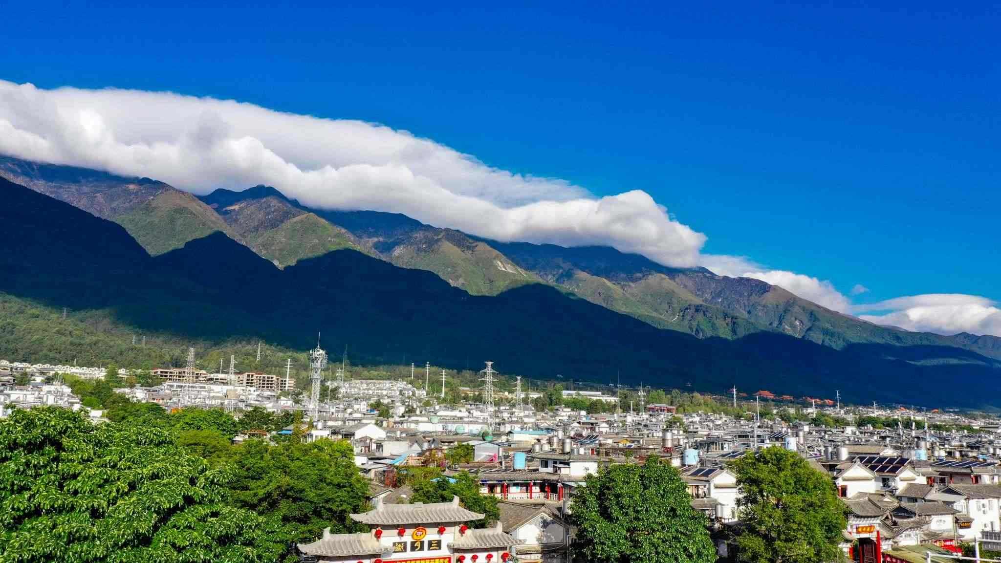 云南大理:蒼山上空現(xiàn)“棉被云”