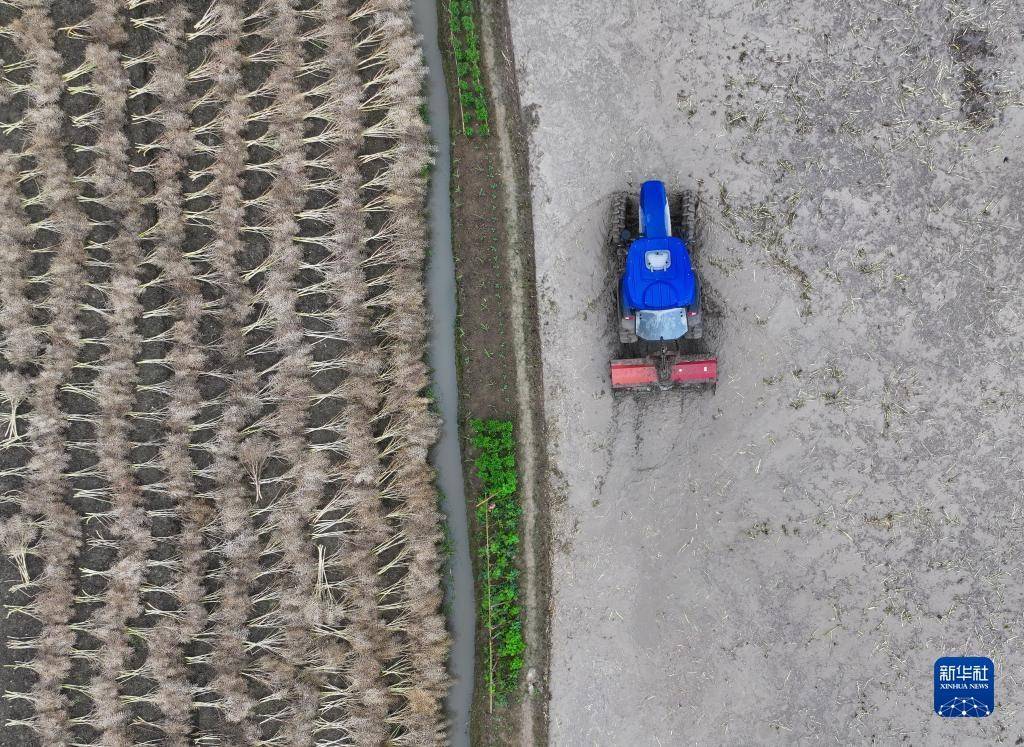 5月9日,四川省邛崍市桑園鎮(zhèn)農(nóng)民駕駛拖拉機(jī)進(jìn)行打漿作業(yè)。