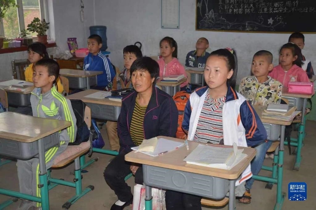 清晨,張連琴和女兒第一個(gè)來(lái)到教室,打掃衛(wèi)生。這是母女倆多年來(lái)每天到校必做的一件事(5月8日攝)。