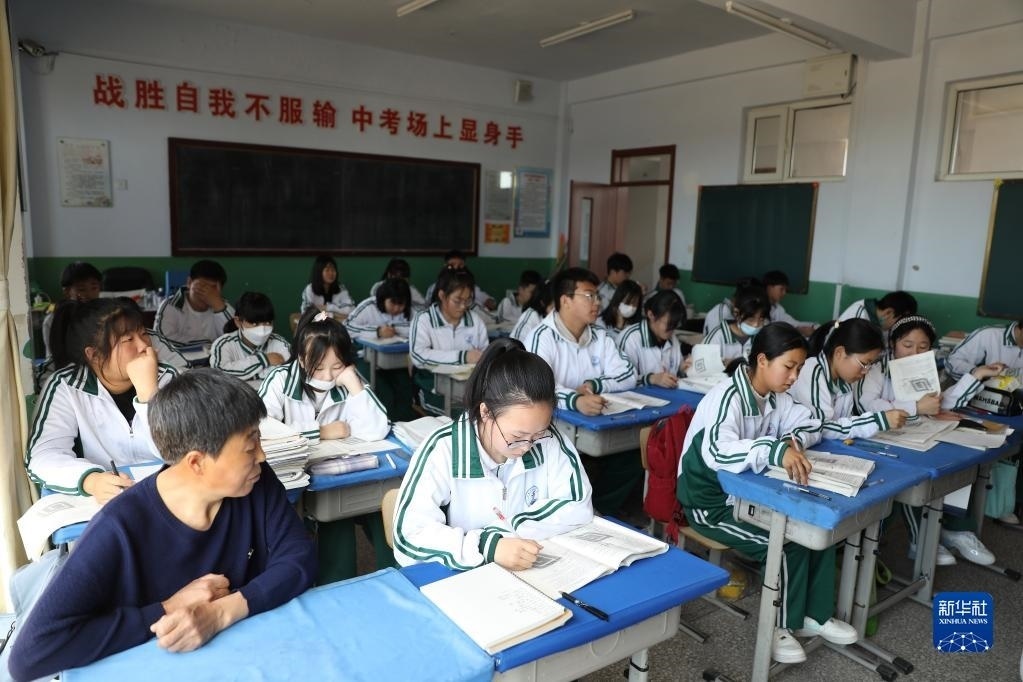 張連琴(左)和女兒李昕偉在教室內(nèi)聽課(5月8日攝)。