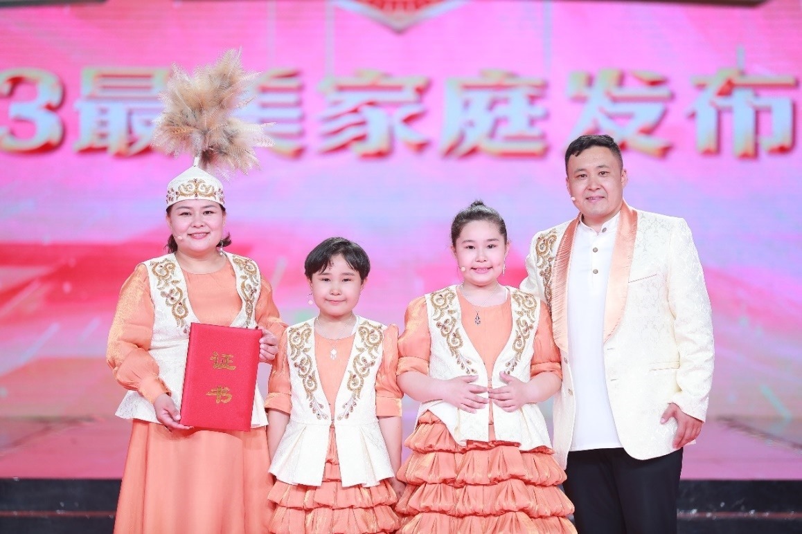本次發(fā)布儀式以“激揚(yáng)家國情,奮斗新征程”為主題,通過真實(shí)的人物短片、生動(dòng)的現(xiàn)場訪談、豐富多樣的文藝節(jié)目,從不同側(cè)面講述了10戶最美家庭的感人故事和家庭成員的工作生活感悟。這10戶最美家庭是全國婦聯(lián)揭曉的2023年全國最美家庭中的典型代表,他們中有的飛天圓夢,用愛與奉獻(xiàn)書寫家國情深;有的傳承紅色家風(fēng),秉持“永遠(yuǎn)跟黨走”的家訓(xùn);有的筑路興國,祖孫三代風(fēng)雨同舟初心不改;有的傳承創(chuàng)新,接力守護(hù)中華優(yōu)秀傳統(tǒng)文化;有的為國戍邊,打造半個(gè)世紀(jì)不換防的“護(hù)邊驛站”;有的倡揚(yáng)移風(fēng)易俗,示范踐行“不要彩禮要幸?!钡奈拿餍嘛L(fēng);有的清正廉潔,用實(shí)際行動(dòng)守護(hù)和傳承著“忠”“孝”“廉”的優(yōu)良家風(fēng);有的用誠信播種,助力糧食增產(chǎn)豐收;有的以書香潤家,播撒讀書立人的教育理念;有的跋山涉水,用阿肯彈唱助力民族團(tuán)結(jié)……他們在家庭中積極踐行社會(huì)主義核心價(jià)值觀,在各行各業(yè)立足崗位發(fā)揚(yáng)勞動(dòng)精神、奮斗精神、奉獻(xiàn)精神、創(chuàng)造精神、勤儉節(jié)約精神,貢獻(xiàn)突出、事跡感人,充分展示了家庭昂揚(yáng)奮進(jìn)新時(shí)代新征程的良好精神風(fēng)貌。