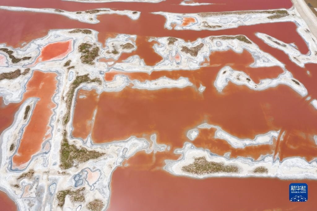 這是5月16日拍攝的運城鹽湖一景(無人機照片)。