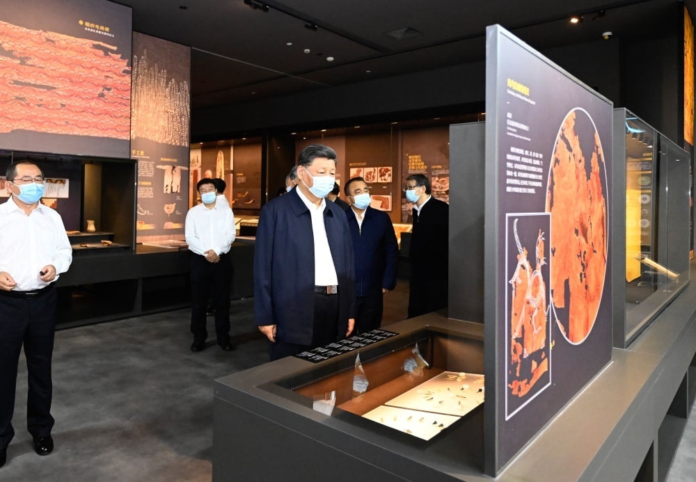 2022年10月28日,習(xí)近平在安陽市殷墟博物館考察。