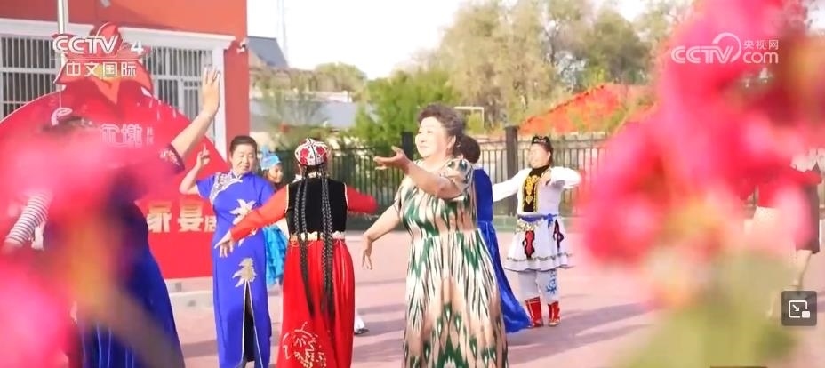 在塔城市哈爾墩社區(qū),第九屆“鄰里節(jié)百家宴”活動正在進行。各民族同胞穿上民族服飾、圍坐長桌、拉起手風琴,在音樂聲中翩翩起舞。春英是哈爾墩社區(qū)居民,是錫伯族人,她的家庭,就由多民族構成。