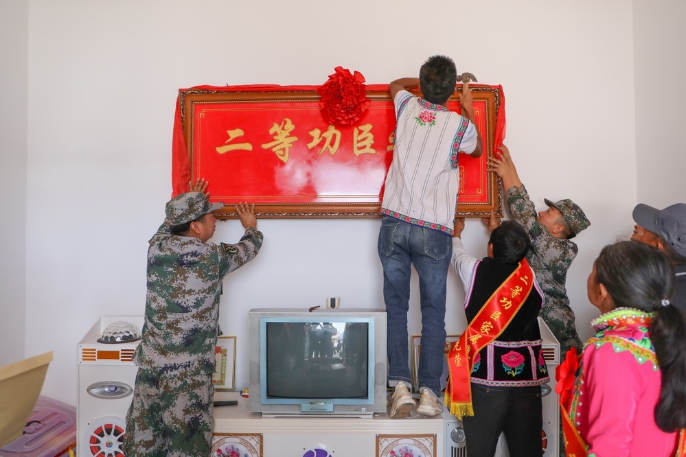 鑼鼓喧天,鞭炮齊鳴。近日,云南省楚雄彝族自治州大姚縣桂花鎮(zhèn)大河村張燈結(jié)彩、熱鬧非凡,武警云南總隊昭通支隊派出送喜報小分隊輾轉(zhuǎn)600余公里來到這里,聯(lián)合當(dāng)?shù)厝宋洳亢屯艘圮娙耸聞?wù)局,為榮立個人二等功的現(xiàn)役軍人鄒永金的家屬送去喜報、牌匾和慰問金。
