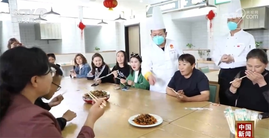 新疆塔城額敏縣居民 唐東升:主要是學炒菜技術(shù)、切配,那些師傅人很好,講了很多經(jīng)驗。上菜老是上錯,我也沒管過,我也不會,后面經(jīng)過培訓就好很多了。