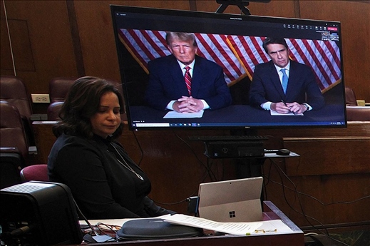 ·當?shù)貢r間5月23日,美國前總統(tǒng)特朗普通過視頻會議出席了“封口費”一案的預審聽證會,庭審持續(xù)約15分鐘。