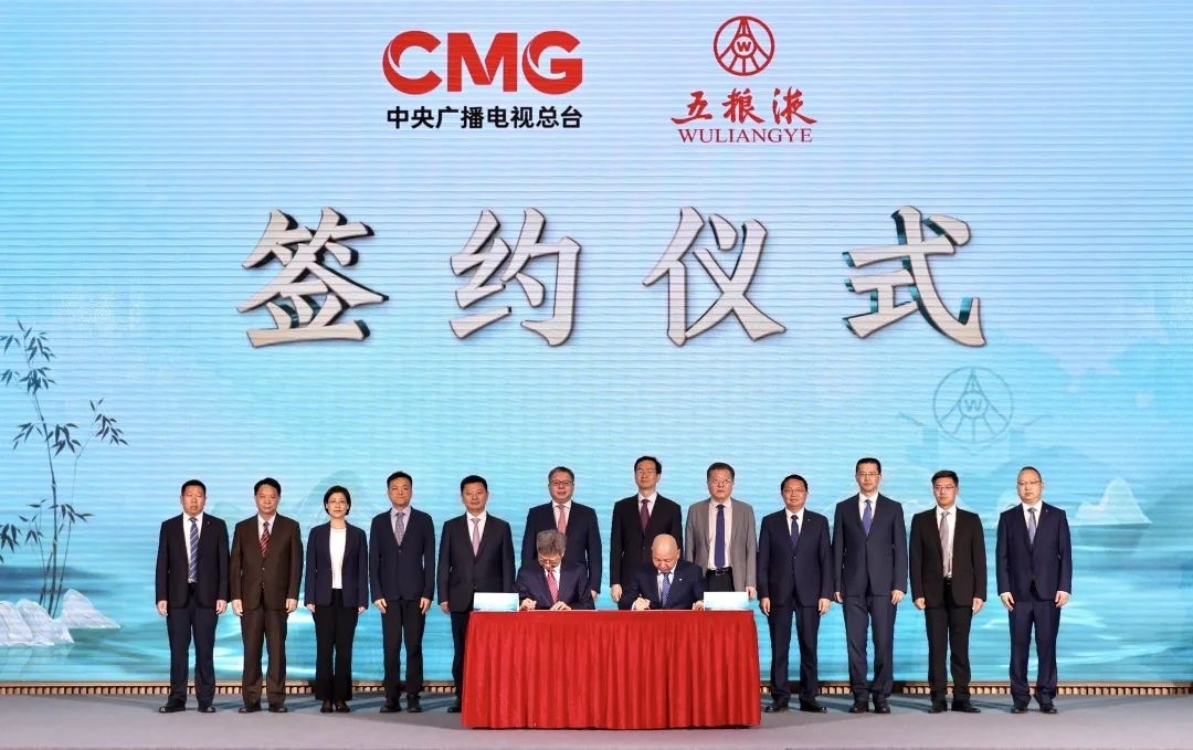 在彭健明、方存好、廖文彬、曾從欽以及總臺(tái)華語環(huán)球節(jié)目中心主任李欣雁,財(cái)經(jīng)節(jié)目中心副主任(主持工作)蔡俊,央視國際網(wǎng)絡(luò)有限公司董事長、央視頻融媒體發(fā)展有限公司總經(jīng)理過彤,四川總站副站長(主持工作)樊承志,四川總站副召集人鄭直,宜賓市副市長羅春濤,五糧液集團(tuán)(股份)公司黨委副書記肖浩,五糧液股份公司總經(jīng)理助理、五糧液品牌事業(yè)部總經(jīng)理黃太國的共同見證下,總臺(tái)總經(jīng)理室副召集人徐立軍與五糧液股份公司副總經(jīng)理劉洋現(xiàn)場簽署了品牌建設(shè)戰(zhàn)略合作協(xié)議。