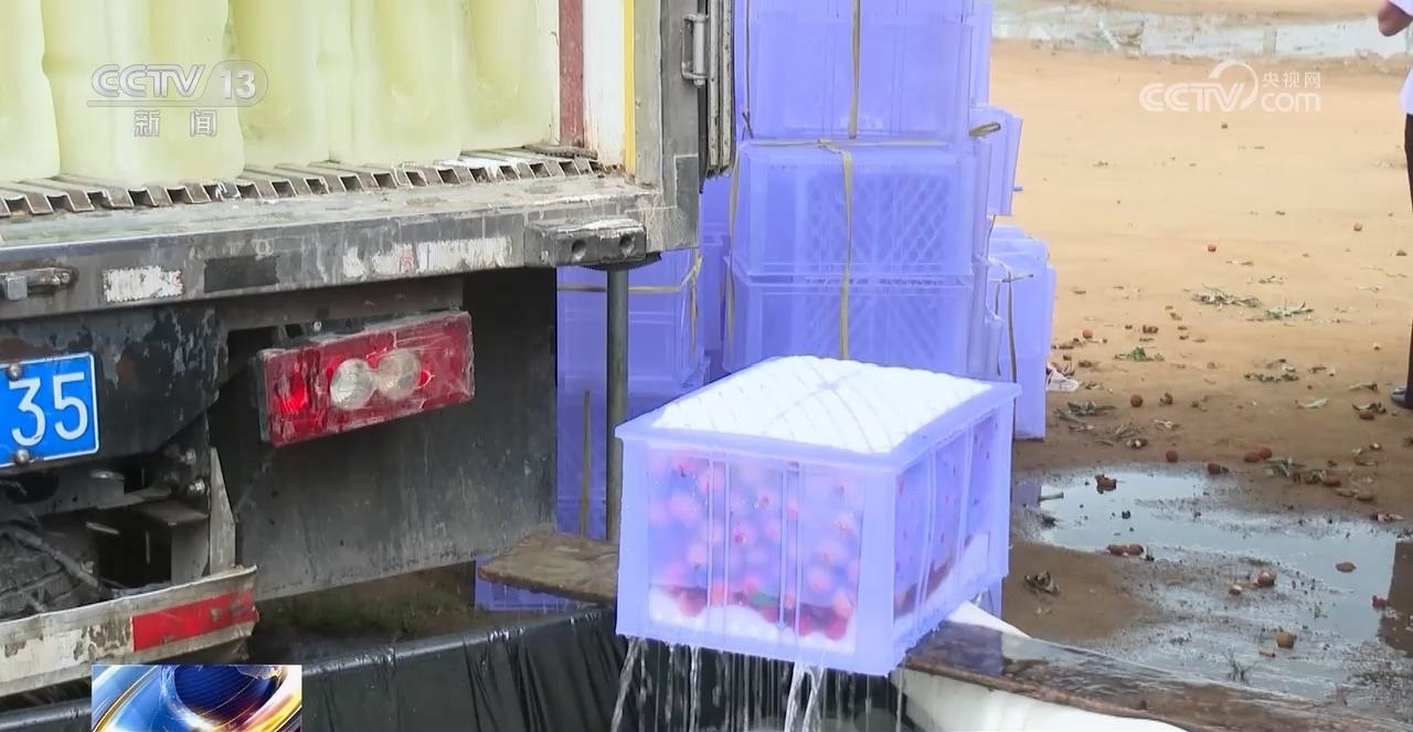 這邊采購(gòu)商前腳剛走,梁康連就來到荔枝分揀打包中心。現(xiàn)在這里剛采摘下來的荔枝,分選打包后,要放到冰水里浸泡一個(gè)小時(shí)以上,再裝上冷鏈車物流運(yùn)輸保證荔枝的新鮮度。