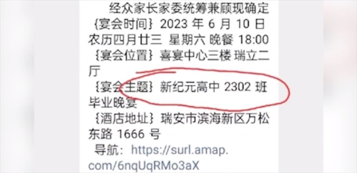 ·溫州一高中高額收費(fèi)組織畢業(yè)晚宴?校方回應(yīng):系家長私自組織,任課教師不知情且未參與。