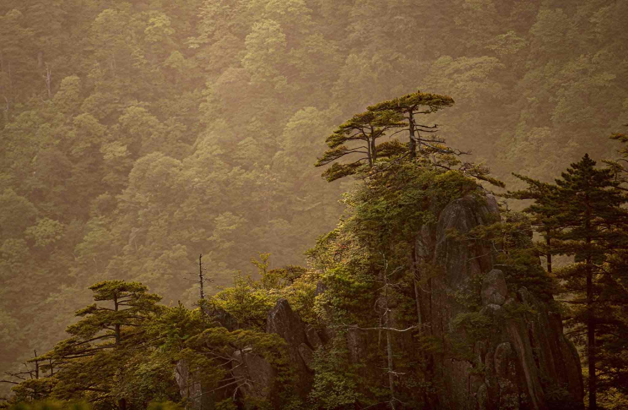 安徽黃山:霞光渲染下的奇峰秀色