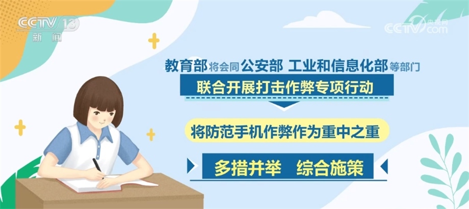 同時,會同公安部、工業(yè)和信息化部等部門聯(lián)合開展打擊作弊專項行動,將防范手機作弊作為重中之重,多措并舉、綜合施策,指導(dǎo)各地強化人防、物防、技防等措施,嚴(yán)格入場安檢規(guī)范,強化考場監(jiān)考巡考,嚴(yán)厲打擊利用手機等通信設(shè)備作弊行為。對于在高考中存在作弊行為的考生和人員,將依法依規(guī)嚴(yán)肅處理,堅決維護(hù)高考的公平公正。