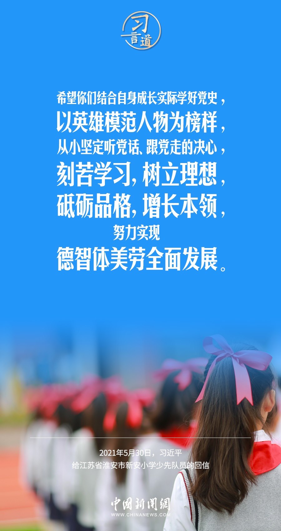 “六一”國際兒童節(jié)到了。習近平總書記高度重視少年兒童的健康成長,多次寄語少年兒童,希望他們有夢想、愛學習,成為對祖國建設有用的人才。