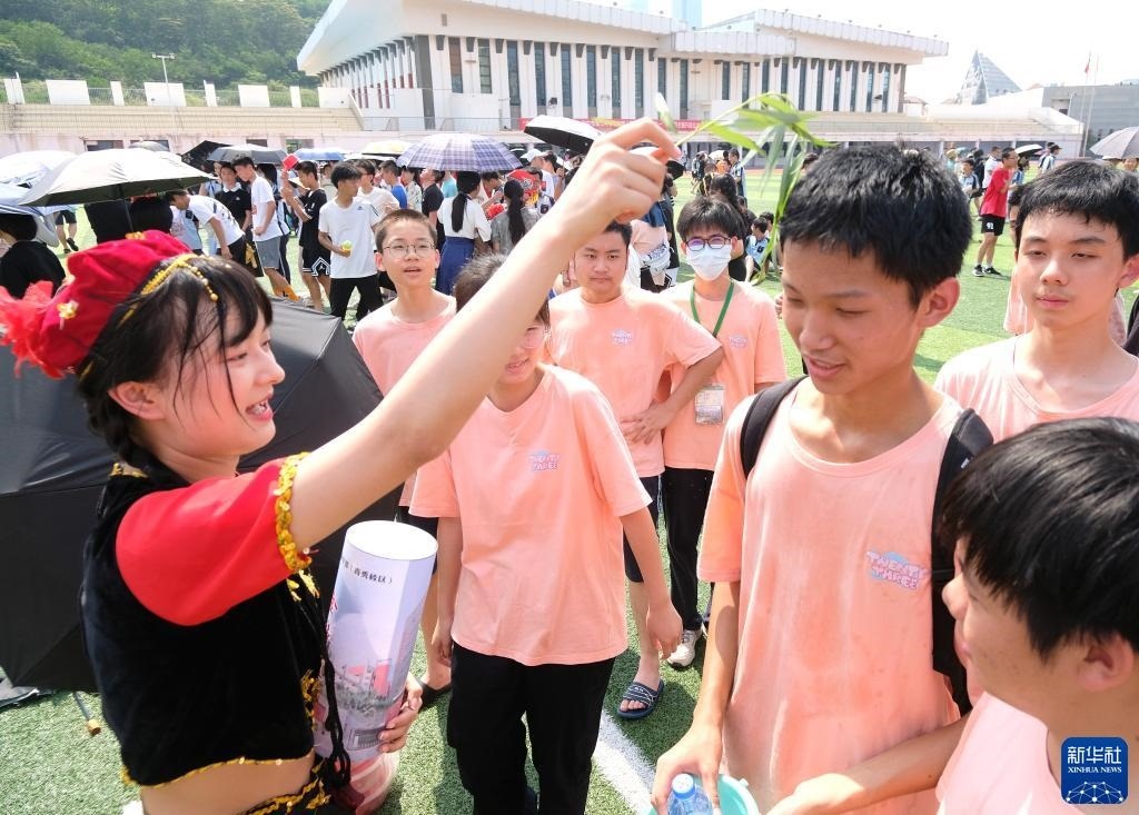 6月2日,學(xué)生們享受潑水活動(dòng)帶來的快樂(無人機(jī)照片)。