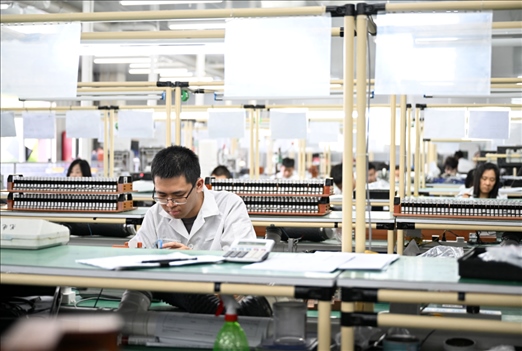 工作人員在天津宜科自動化股份有限公司傳感器生產(chǎn)車間內(nèi)工作。新華社記者 趙子碩 攝