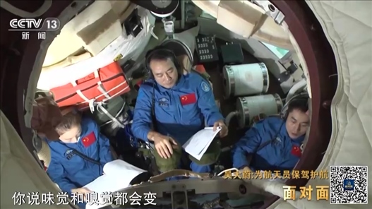 吳大蔚:從我親身來做咱們空間站還有前面的各次任務(wù)來看,航天員整體上睡眠還是不錯的,他們在天上的睡眠效率比地面還要好一些。因為一個是在飛行之前,他們是以全力以赴的狀態(tài)在準(zhǔn)備。到了天上以后,他們很快就適應(yīng)環(huán)境了,更踏實了,睡眠效率比地面還要高,我們覺得確實是他們心理素質(zhì)非常好,也確實是證明了我們載人航天在不斷進步,這也是一個非常好的,非常有意思的數(shù)據(jù)。