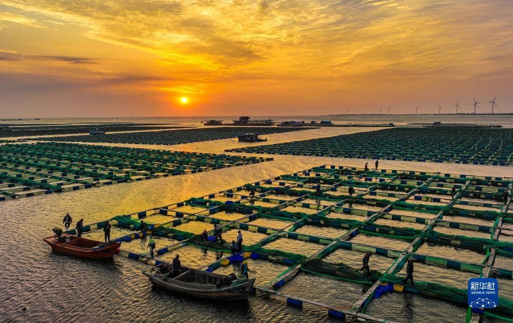 山東榮成:海洋牧場朝霞如畫