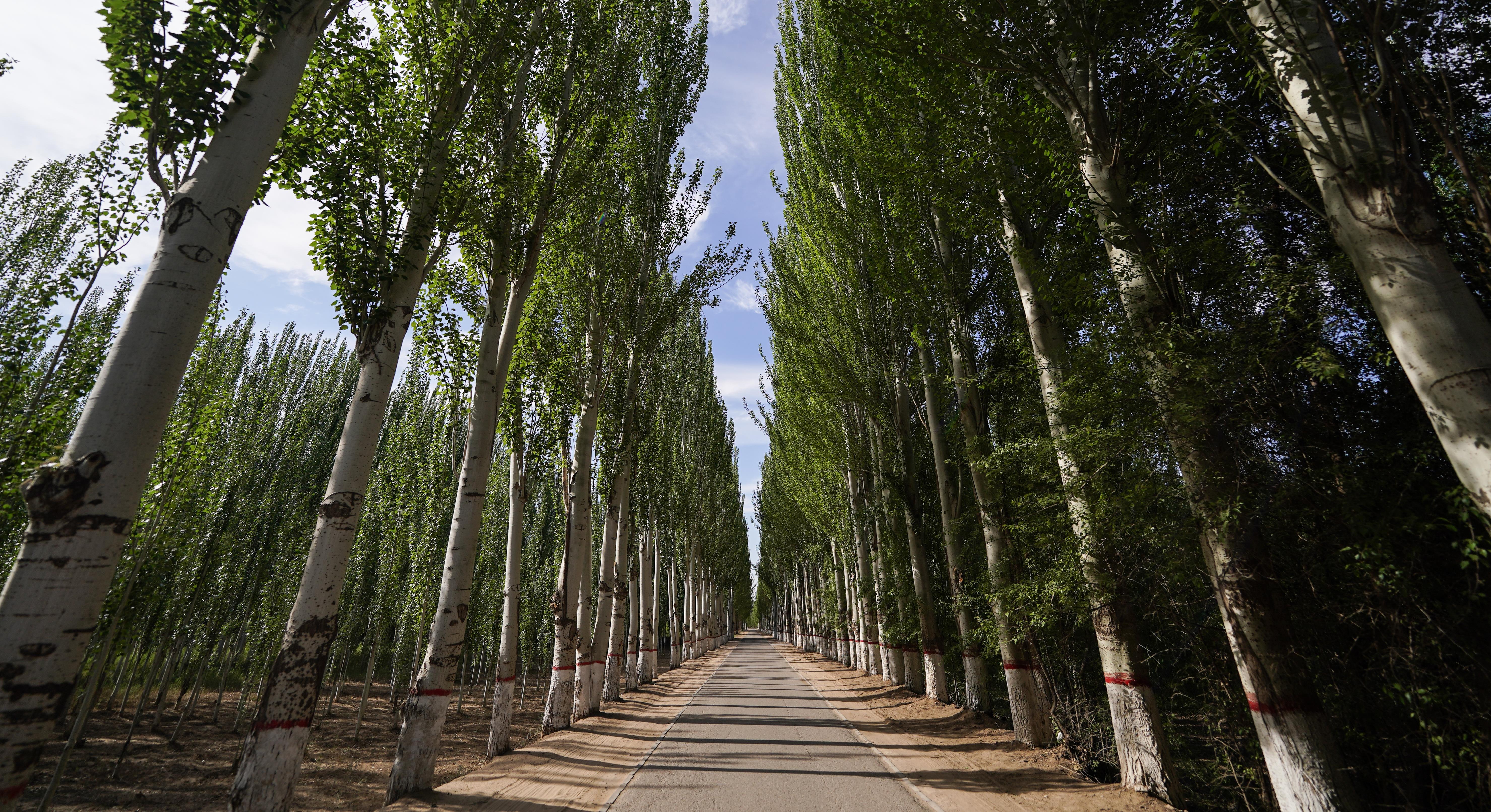 △內(nèi)蒙古巴彥淖爾市臨河區(qū)國營新華林場的防護(hù)林(總臺(tái)國廣記者李晉拍攝)