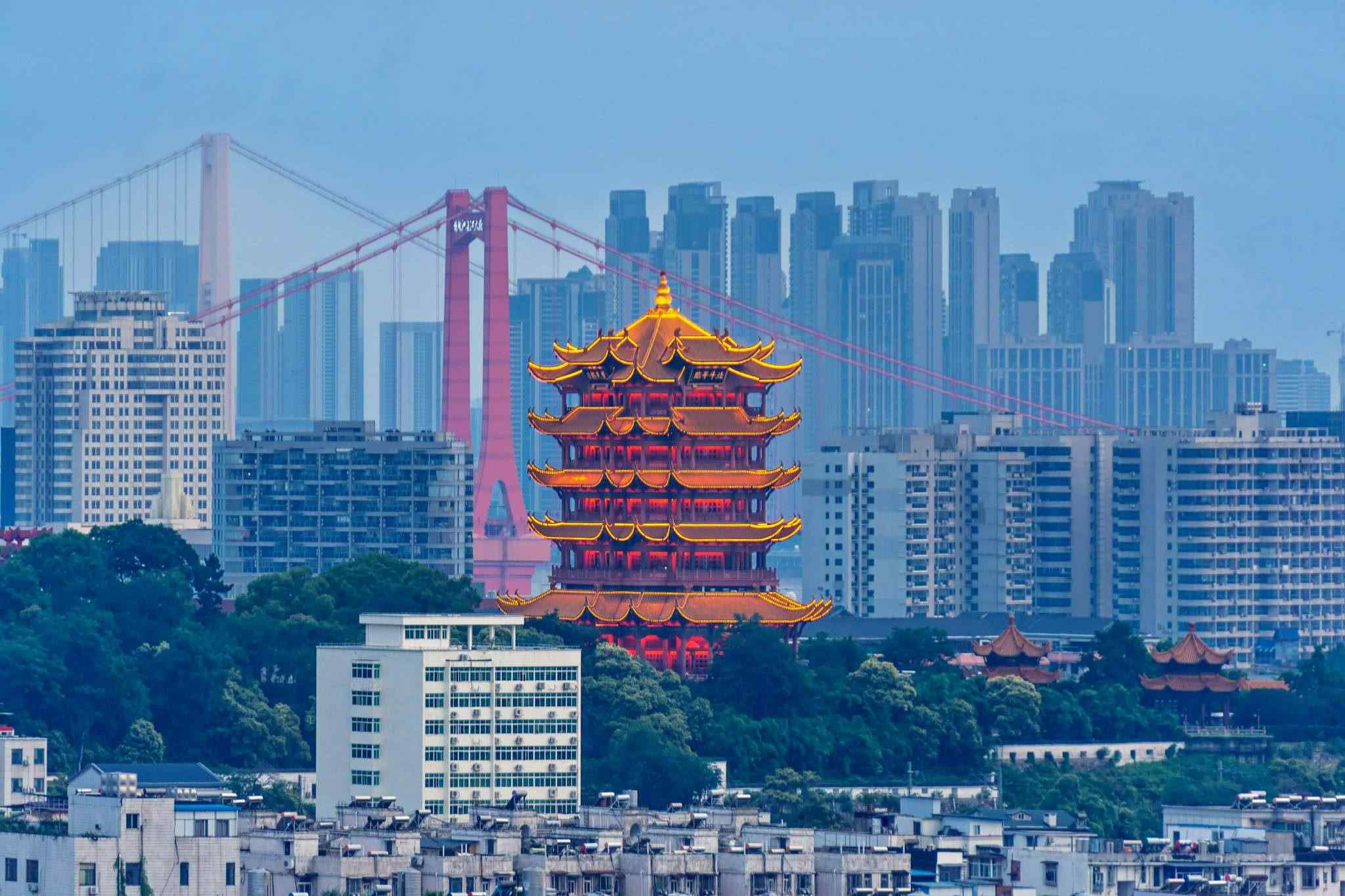 武漢:黃鶴樓與鸚鵡洲大橋同框