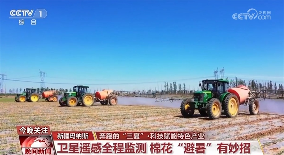 眼下,新疆昌吉瑪納斯縣的棉花正值現(xiàn)蕾期?,F(xiàn)蕾期指的是出現(xiàn)花蕾到開花這一段時(shí)間,這個(gè)時(shí)候棉株生長(zhǎng)最快,然而持續(xù)的高溫給田間管理帶來考驗(yàn)。在瑪納斯縣樂土驛鎮(zhèn)的棉花田里,三臺(tái)裝有北斗導(dǎo)航系統(tǒng)的大馬力拖拉機(jī)正按照預(yù)先設(shè)定的線路進(jìn)行除草作業(yè)。這是農(nóng)技人員通過衛(wèi)星遙感棉花全程監(jiān)測(cè)技術(shù),幫種植戶制定的科學(xué)田管方案。
