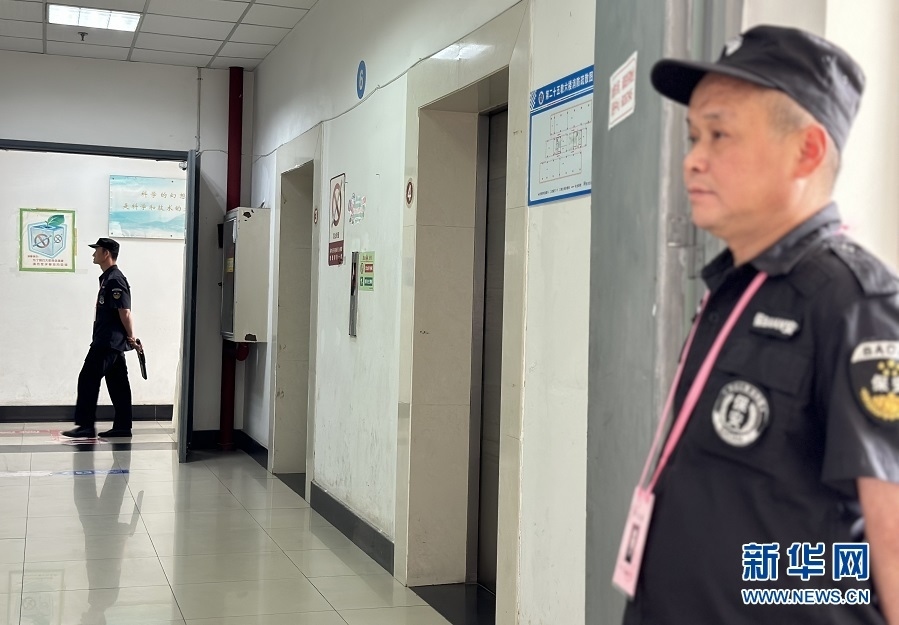 全國(guó)統(tǒng)考科目西南大學(xué)評(píng)卷點(diǎn),安保人員正在執(zhí)勤。新華網(wǎng) 彭浩然 攝