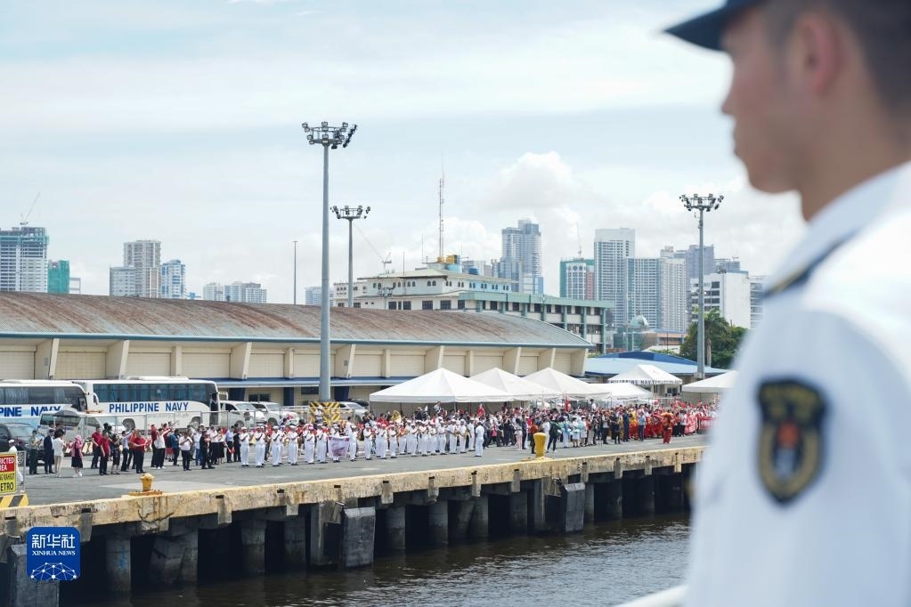 6月14日,在菲律賓馬尼拉港,人們在岸邊迎接戚繼光艦抵達。