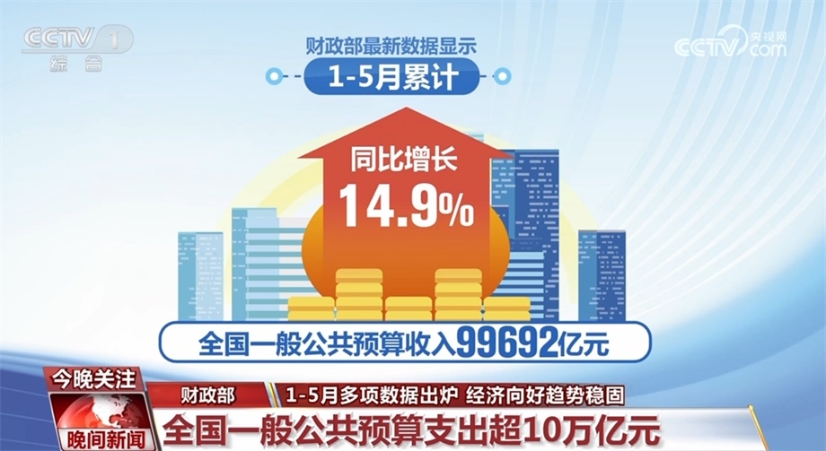 財(cái)政部最新數(shù)據(jù)顯示,1—5月累計(jì),全國(guó)一般公共預(yù)算收入99692億元,同比增長(zhǎng)14.9%;全國(guó)一般公共預(yù)算支出104821億元,同比增長(zhǎng)5.8%。教育、科學(xué)技術(shù)、社會(huì)保障和就業(yè)、衛(wèi)生健康等支出,同比增長(zhǎng)均超過(guò)5%。