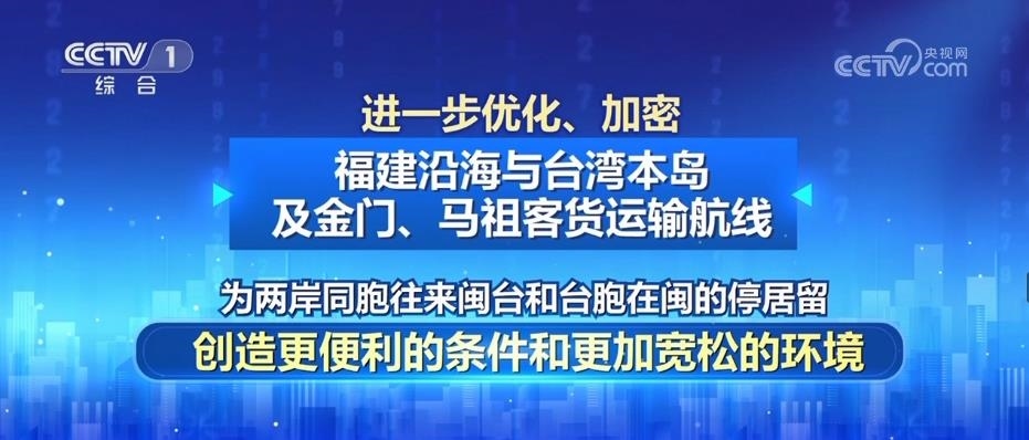 二是進(jìn)一步優(yōu)化、加密福建沿海與臺(tái)灣本島及金門、馬祖客貨運(yùn)輸航線,為兩岸同胞往來閩臺(tái)和臺(tái)胞在閩的停居留,創(chuàng)造更便利的條件和更加寬松的環(huán)境。