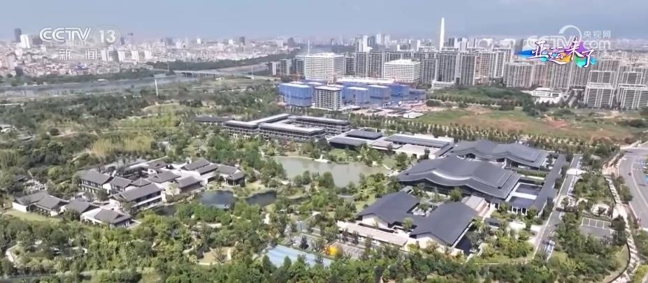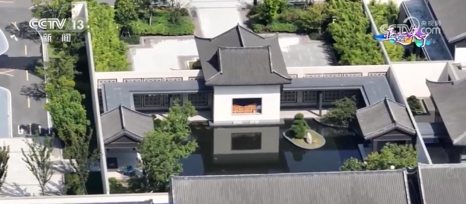 坡屋頂、灰瓦白墻,這里是金華的亞運分村。這個村的建設(shè)非常具有金華特色,各個建筑的外形吸取了江南造園精髓,灰瓦白墻、小橋流水,各式綠植樹木沿著水系有序分布。