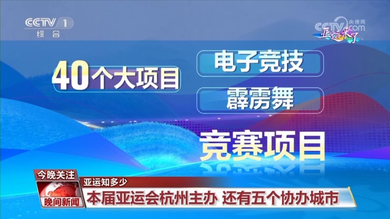 杭州亞運(yùn)會以杭州為主辦城市,寧波、溫州、湖州、紹興、金華為五個協(xié)辦城市。本屆亞運(yùn)會競賽項(xiàng)目在保持40個大項(xiàng)目不變的前提下,增設(shè)電子競技、霹靂舞兩個競賽項(xiàng)目。16個比賽日,預(yù)計(jì)共產(chǎn)生482枚金牌。?
