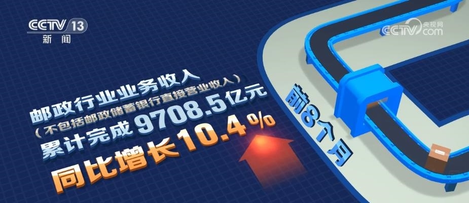 郵政行業(yè)業(yè)務(wù)收入前8個月(不包括郵政儲蓄銀行直接營業(yè)收入)累計完成9708.5億元,同比增長10.4%。其中,快遞業(yè)務(wù)收入累計完成7488.1億元,同比增長10.7%。