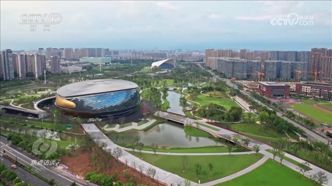 杭州亞運(yùn)會(huì)運(yùn)河體育公園指揮長馮晶:“亞運(yùn)體育公園是按照綠色環(huán)保功能打造的,也是浙江省首座體育場館綠色三星級(jí)建筑。體育館的外立面采用陽極氧化鋁材料,在雨天有自清潔的功能,不用人工清洗外立面。透水混凝土在雨天有非常好的滲水功能,和我們的人工湖相結(jié)合,在晴天可以反哺草地,實(shí)現(xiàn)海綿城市的標(biāo)準(zhǔn)規(guī)范?!?/p>