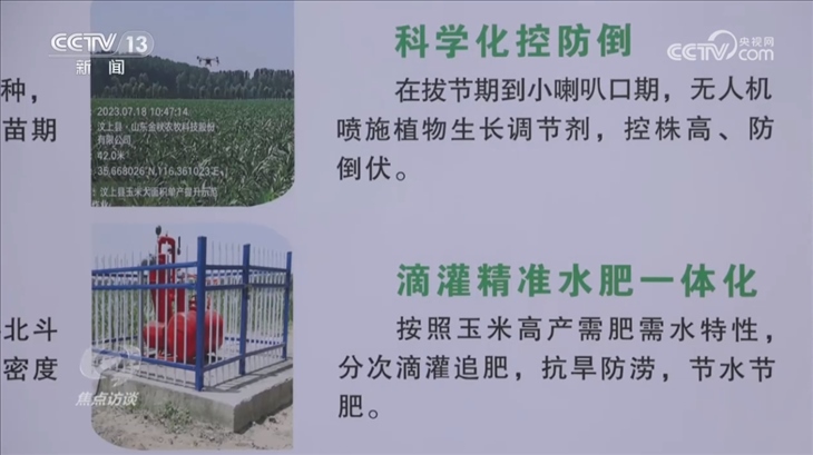 郭波波所在的汶上縣作為國家玉米單產(chǎn)提升整建制推進(jìn)縣,有5萬畝玉米單產(chǎn)提升示范區(qū),今年第一次試驗推廣密植滴灌高產(chǎn)精準(zhǔn)調(diào)控技術(shù)。種植戶們擔(dān)心密植后的玉米出現(xiàn)營養(yǎng)不良和倒伏,這項技術(shù)就是要解決這個痛點。通過鋪在地上的滴管,對玉米進(jìn)行水肥一體化滴灌,讓玉米“少食多餐、食量均勻”,既節(jié)肥節(jié)水,又能補(bǔ)充足夠的營養(yǎng),從而增加玉米的抗倒伏能力。