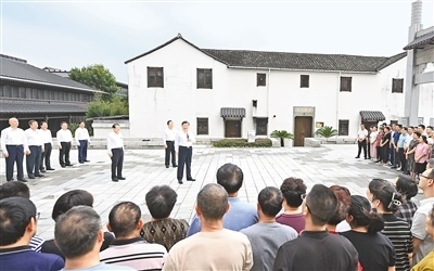 隨后,習近平乘車來到位于紹興的浙東運河文化園考察。他步行察看古運河河道和周邊歷史文化遺存,詳細了解浙東運河發(fā)展演變史和當?shù)睾侠砝盟Y源、推進大運河保護等情況。習近平強調(diào),大運河是世界上最長的人工運河,是十分寶貴的文化遺產(chǎn)。大運河文化是中國優(yōu)秀傳統(tǒng)文化的重要組成部分,要在保護、傳承、利用上下功夫,讓古老大運河煥發(fā)時代新風貌。