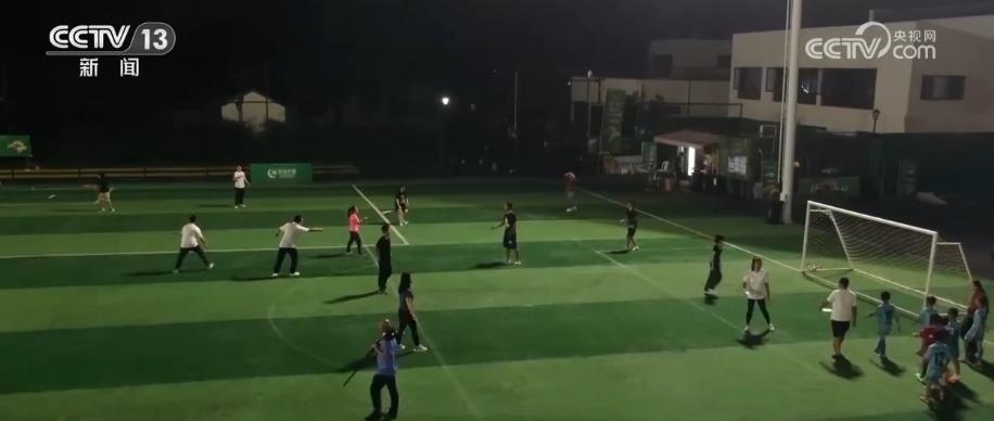 總臺(tái)記者 李欣蔓:新港村足球場(chǎng)占地約26畝,包含兩塊標(biāo)準(zhǔn)的11人制足球場(chǎng)。五六年前,這里還是一片被騰退的低小散企業(yè)所剩下的老廠房。2019年,村里建起了第一塊專業(yè)的運(yùn)動(dòng)場(chǎng)地。2023年以來,這里已經(jīng)承接了35場(chǎng)足球賽,各類包場(chǎng)活動(dòng)達(dá)到80多次。除了承接活動(dòng)和比賽,這塊場(chǎng)地還免費(fèi)向村民和散客開放。