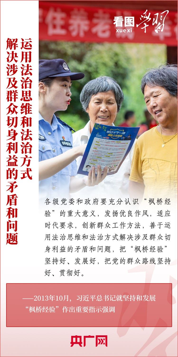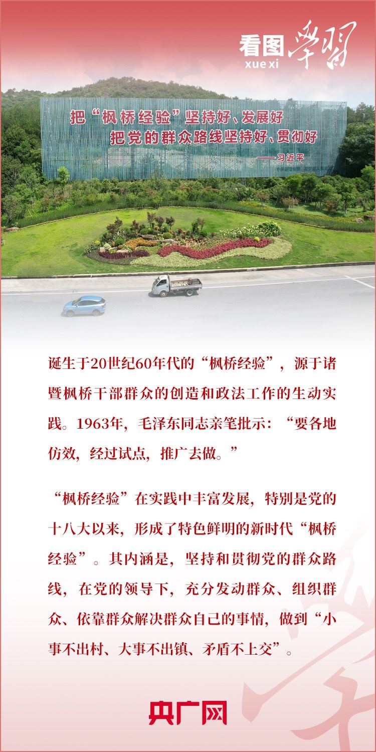 9月20日,習近平總書記在浙江考察,來到“楓橋經(jīng)驗”發(fā)源地諸暨市楓橋鎮(zhèn),參觀楓橋經(jīng)驗陳列館,強調要堅持好、發(fā)展好新時代“楓橋經(jīng)驗”。