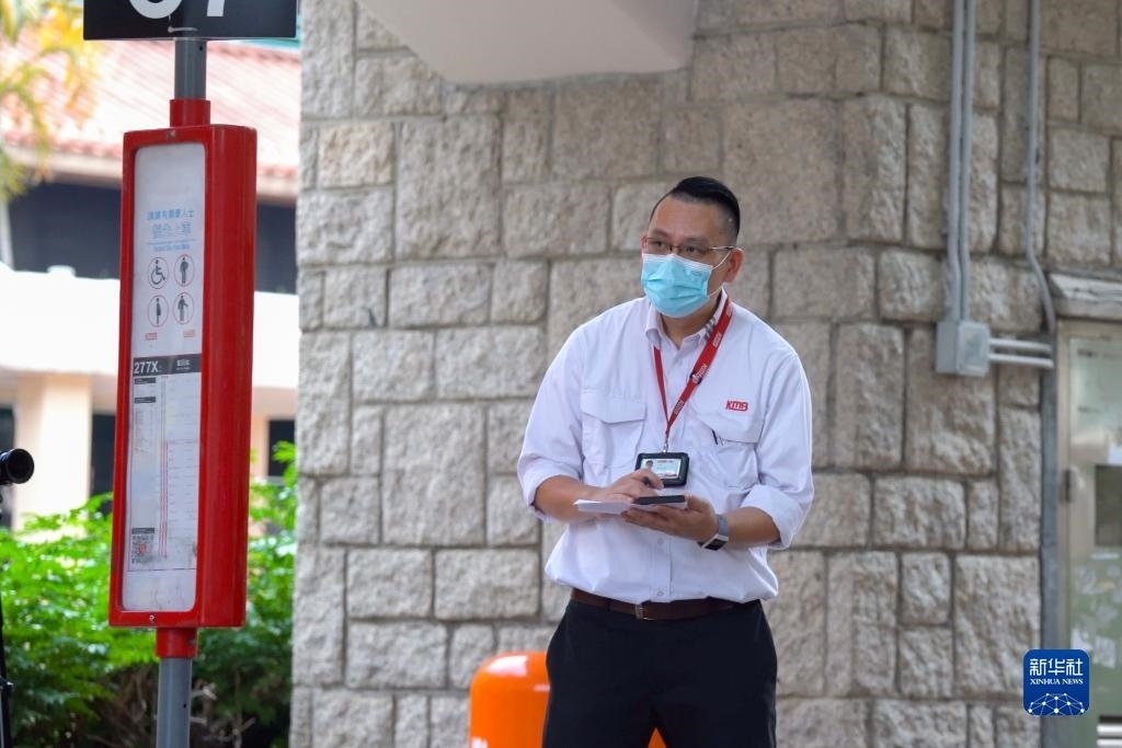 香港九巴總車務督察謝偉彬在工作中(5月12日攝)。新華社記者 龍鏡伊 攝