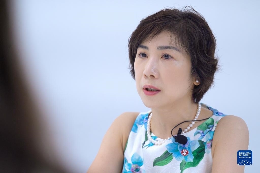 港鐵公司總經理(市務及客戶體驗)梁靜雯接受采訪(7月12日攝)。新華社記者 龍鏡伊 攝