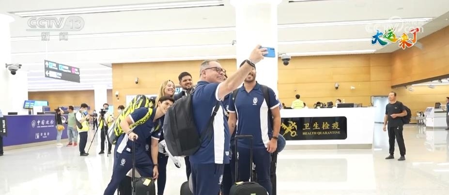 當(dāng)天抵達的巴西代表團在機場完成海關(guān)衛(wèi)生檢疫及通關(guān)手續(xù)后,代表團成員表示,很高興來到成都,希望打好比賽的同時也希望好好感受成都的美好生活。