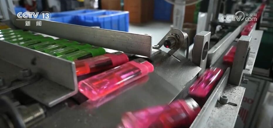 這家企業(yè)是第一批入駐產(chǎn)業(yè)園的企業(yè),目前日產(chǎn)打火機150萬只。記者發(fā)現(xiàn),這里的每道生產(chǎn)工序中都能看到自動化設(shè)備的身影。在質(zhì)檢環(huán)節(jié),廠家正在用機器視覺技術(shù)給打火機“做體檢”,看火苗高度是否符合出廠要求。