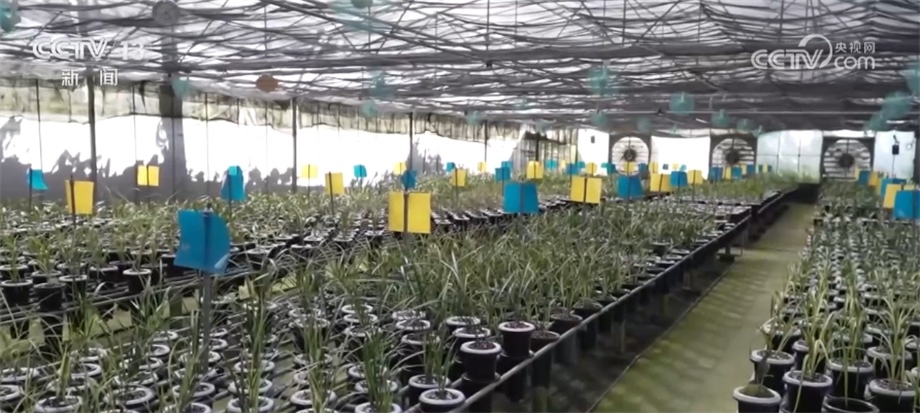 總臺央視記者 陳燁煒:今天室外的溫度在38℃左右,但是在蘭花的種植棚里是28℃左右,為什么室外和室內(nèi)的溫度能相差10℃?原因就在于在這個棚里面被安裝上了一系列的智能設(shè)備,一旦里面的溫度超過了設(shè)定值,這里的水簾、噴霧設(shè)備就會自動開啟,來進行一系列的調(diào)節(jié),以此來達到這些蘭花最適宜生長的一個環(huán)境。