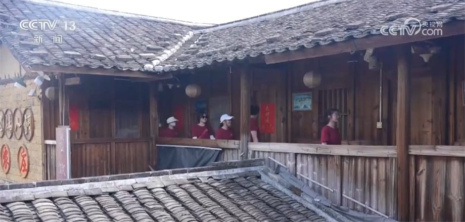 總臺央視記者 陳燁煒:我身后的這棟樓已經(jīng)有100多年的歷史,鵝卵石鋪成的小院、青磚砌成的外墻以及木質(zhì)結(jié)構(gòu)的房屋,處處在向我們傳遞著古老的文化氣息,多年前這里曾經(jīng)是當?shù)鼐用窬幼〉姆课?,而近幾年?jīng)過改造后,已經(jīng)成了很多外地游客慕名前來的網(wǎng)紅打卡地。
