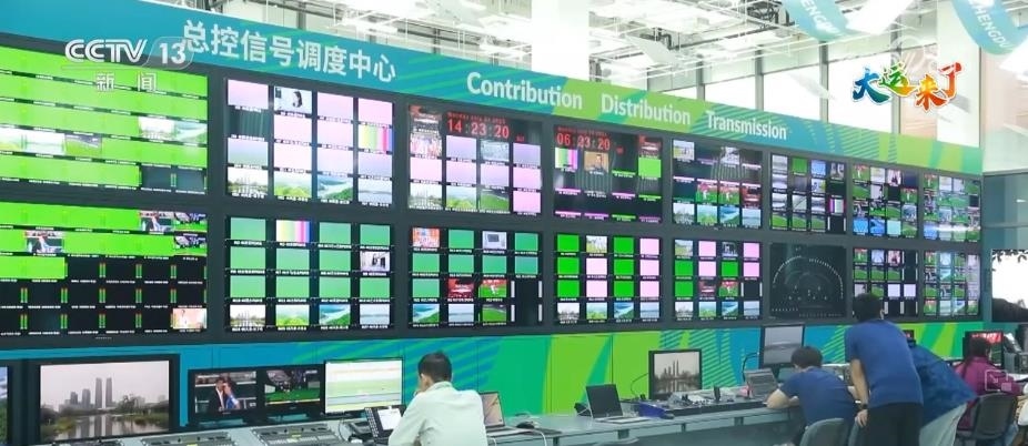 國(guó)際廣播中心是大運(yùn)會(huì)廣播電視公用信號(hào)匯集、制作、分發(fā)的場(chǎng)所。中央廣播電視總臺(tái)作為成都大運(yùn)會(huì)的主轉(zhuǎn)播機(jī)構(gòu)和全媒體獨(dú)家持權(quán)轉(zhuǎn)播商,將制作近千小時(shí)公用信號(hào),向超過(guò)20家海外持權(quán)轉(zhuǎn)播商及35家境內(nèi)持權(quán)轉(zhuǎn)播商提供轉(zhuǎn)播服務(wù),并首次以“全4K”標(biāo)準(zhǔn)開(kāi)展大運(yùn)會(huì)信號(hào)制作,并在網(wǎng)球、田徑項(xiàng)目中創(chuàng)新制作8K公用信號(hào)。