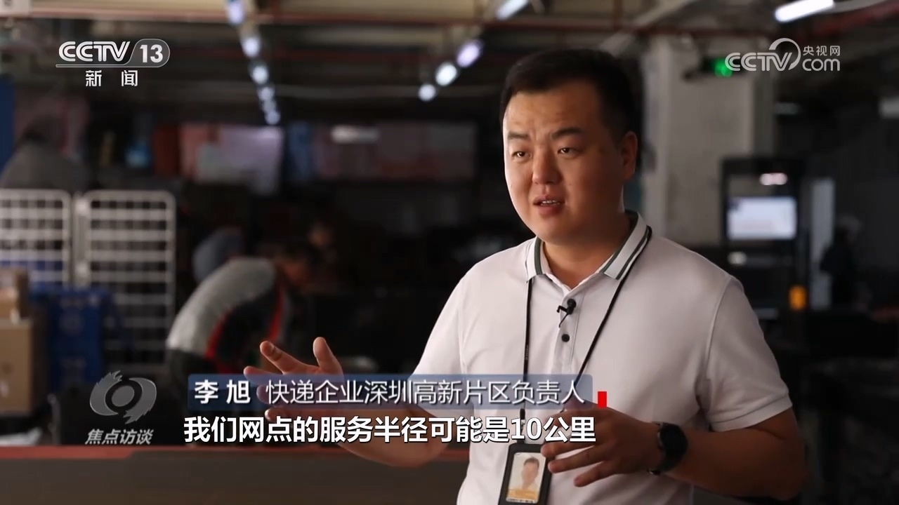 快遞企業(yè)速運(yùn)深圳高新片區(qū)負(fù)責(zé)人李旭:“在電子科技化沒有實(shí)施的時(shí)候,網(wǎng)點(diǎn)服務(wù)半徑比較大,往前推十年,網(wǎng)點(diǎn)服務(wù)半徑可能是10公里,當(dāng)年10公里服務(wù)半徑和目前2.5公里服務(wù)半徑不一樣,當(dāng)年的時(shí)間段比如每天有1萬單,現(xiàn)在一天5萬單,從服務(wù)半徑來減少小哥的往返距離,提高收派效率。”