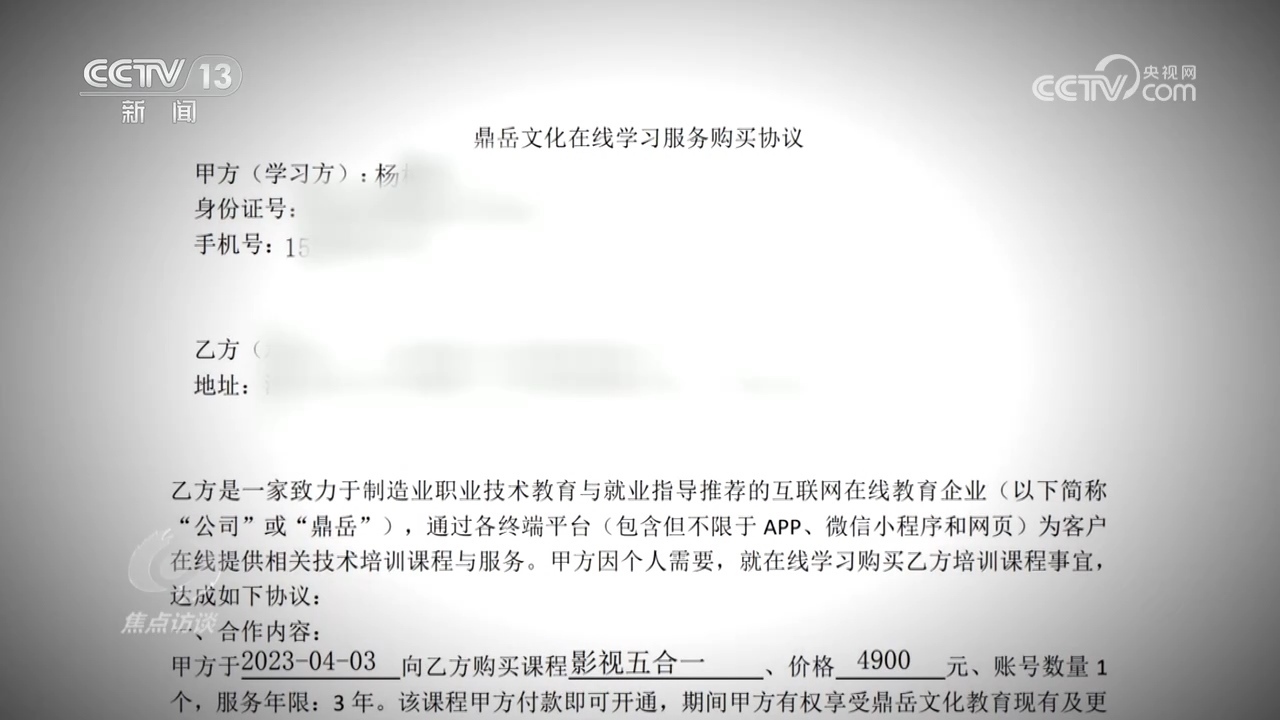 然而,這次鼎岳公司的工作人員也沒再用推薦兼職來安撫他,而是直接拿出了培訓(xùn)合同,上面寫著“自用戶繳費(fèi)兩個(gè)月后,鼎岳將不再為用戶提供退費(fèi)服務(wù)。”看著這份自己簽了字的培訓(xùn)合同,小楊意識(shí)到退費(fèi)難了。