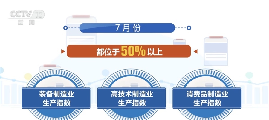 ?????? 國(guó)家統(tǒng)計(jì)局服務(wù)業(yè)調(diào)查中心二級(jí)巡視員 史朝暉:從具體的行業(yè)表現(xiàn)情況來(lái)看,7月份的石油煤炭加工、化學(xué)纖維及橡膠塑料制品,還有專(zhuān)用設(shè)備,鐵路、船舶、航空航天設(shè)備以及計(jì)算機(jī)通信電子設(shè)備,這些行業(yè)的生產(chǎn)指數(shù)和新訂單指數(shù)都是高于臨界點(diǎn)的,表明這些行業(yè)的產(chǎn)需兩端同步擴(kuò)張。