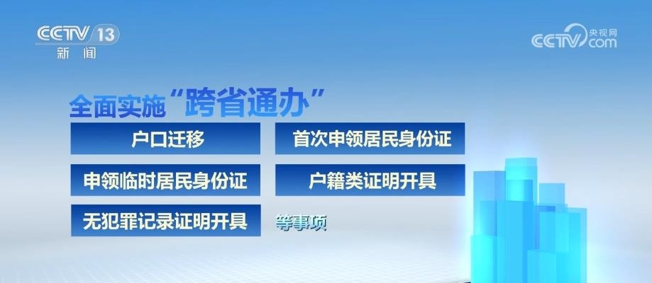 全面實施“跨省通辦”。對戶口遷移、首次申領居民身份證、申領臨時居民身份證、戶籍類證明開具、無犯罪記錄證明開具等事項,全面實施“跨省通辦”。